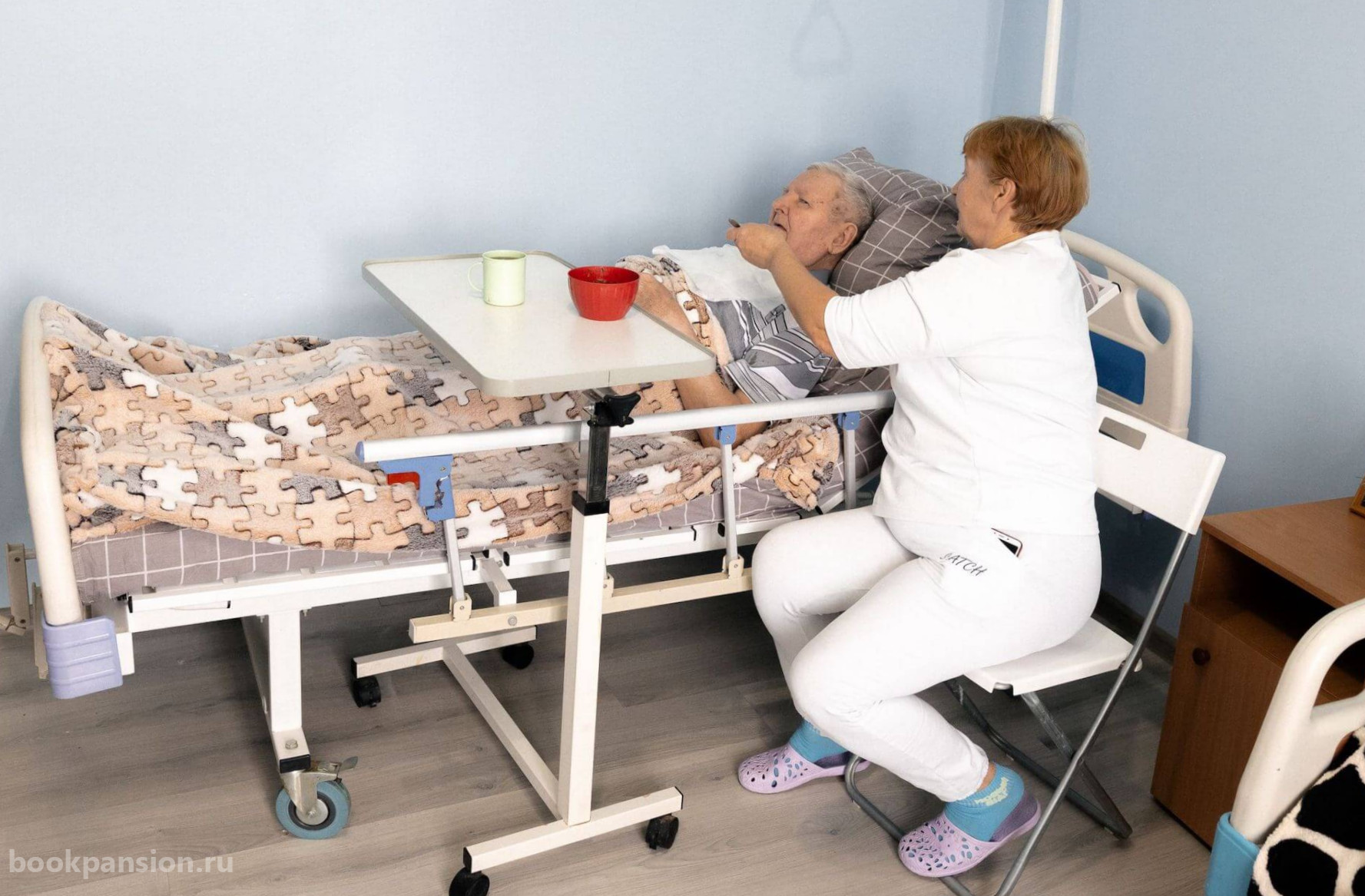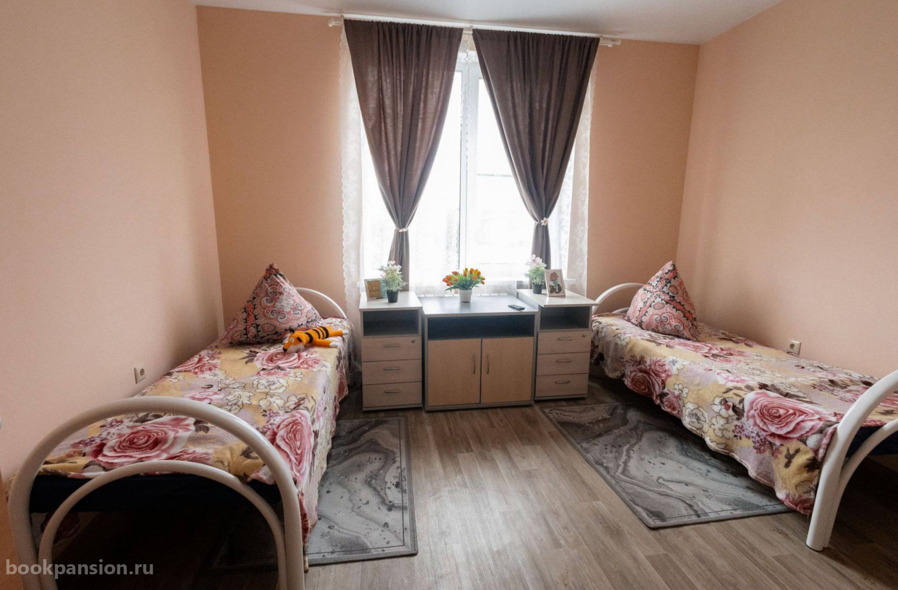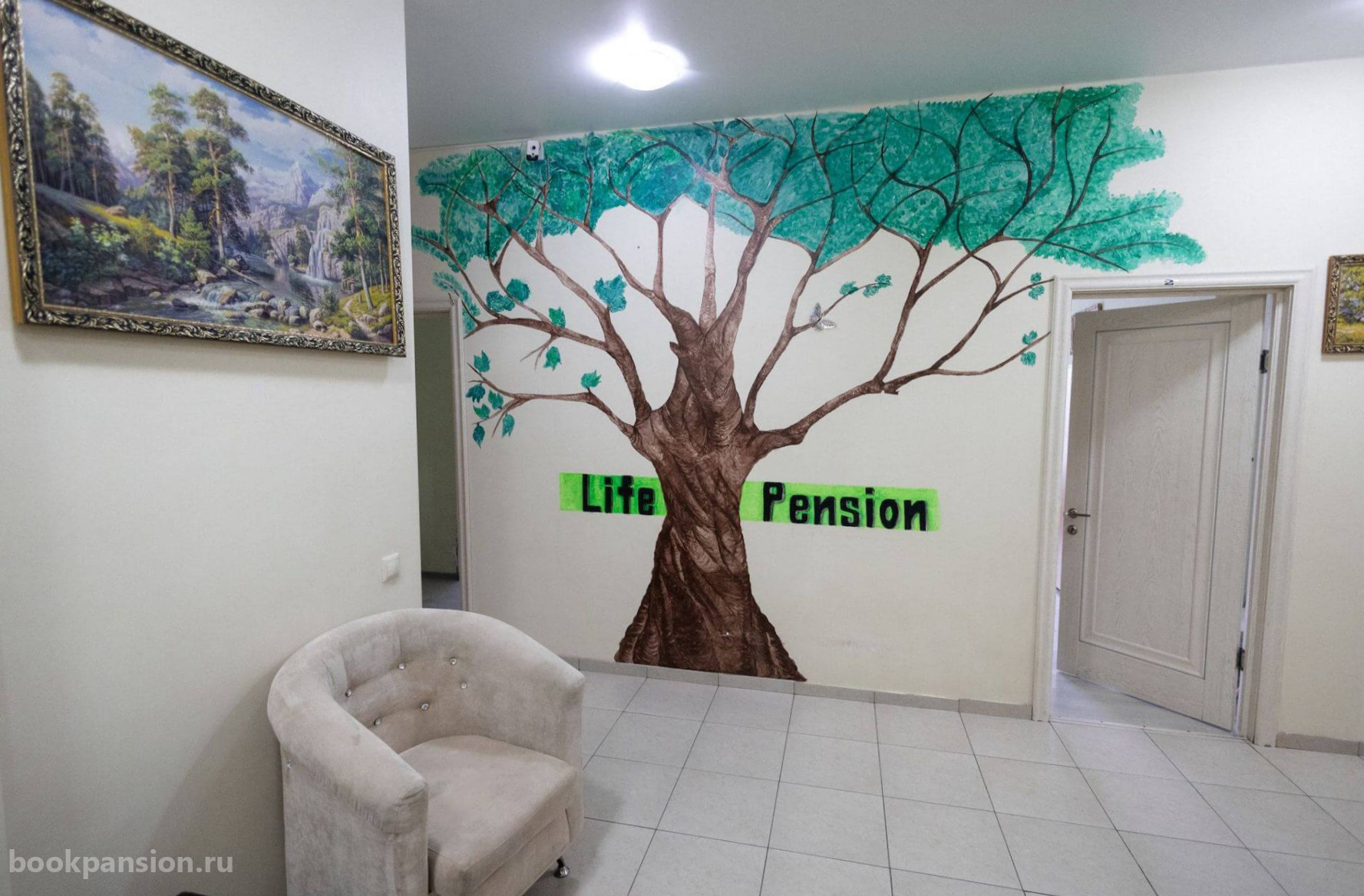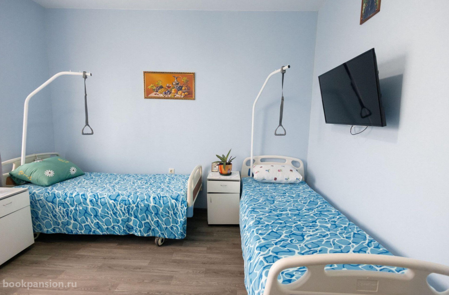 Для размещения предоставляются комфортабельные номера разной вместимости. Есть индивидуальные и общие комнаты. В каждой установлена современная мебель, телевизоры. Постояльцам выдаются кнопки вызова персонала. В пансионате работает видеонаблюдение.